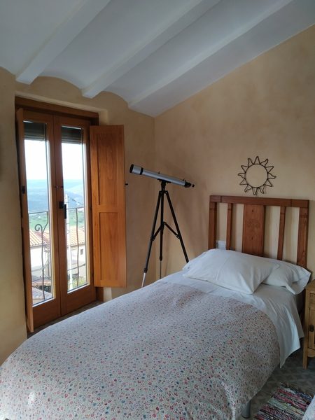 Además, dispone de una magnífica terraza con unas vistas impresionantes, consideradas entre las mejores del Geoparque Villuercas-Ibores-Jara. Está equipada con mesa y sillas, creando el lugar perfecto para relajarse, disfrutar del paisaje y dejarse sorprender por su espectacular cielo estrellado.